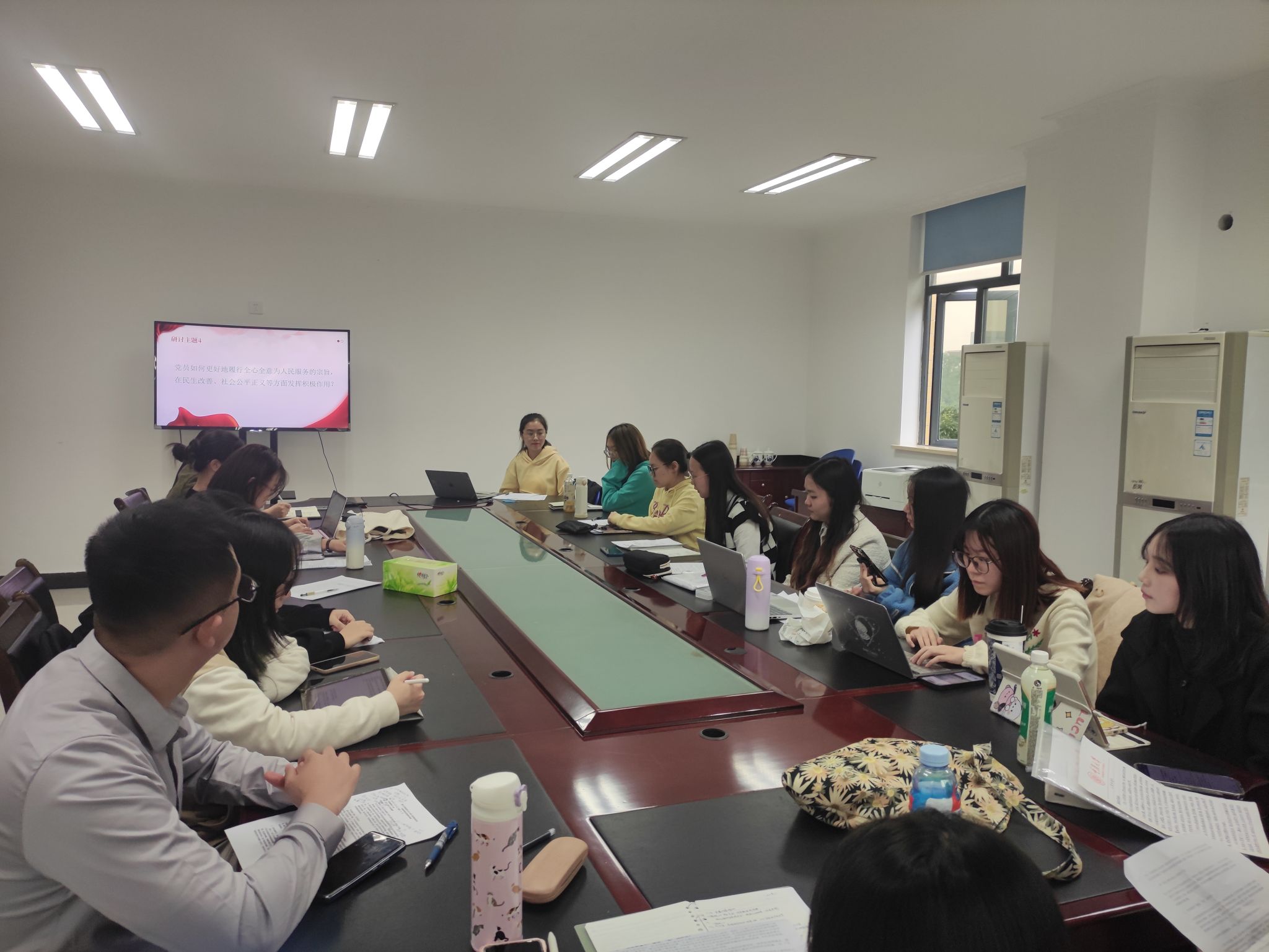 围绕“党员如何更好地履行全心全意为人民服务的宗旨,在民生改善、社会公平正义等方面发挥积极作用”的主题,各位同学一致认为党员应该首先提高自身素质,向张桂梅、林占熺等同志学习,提高自身精神追求,积极投身社会实践,参与社会服务与扶贫工作。
