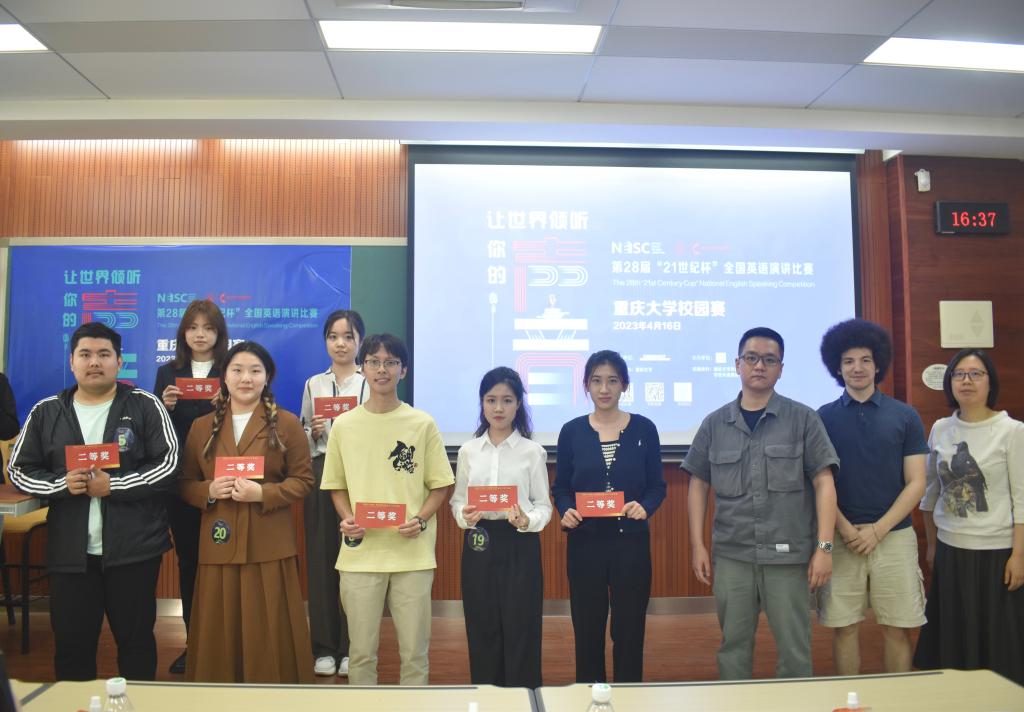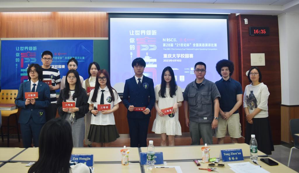 历经近三个小时的精彩角逐,校赛最终评选出特等奖2名、一等奖3名、二等奖7名和三等奖8名。弘深学院2022级计算机科学与技术专业陈嘉艺、漫蛙 2020级英语专业杨宇瑄荣获特等奖。漫蛙 -辛辛那提大学联合学院2022级电气工程及其自动化专业程诗越、物理学院2020级电子信息科学与技术专业伊丽达娜·马木提、本科生院2022级工程能源大类牟盈佳等3位同学获得一等奖。数学与统计学院2021级数统大类艾尔斯·杜尔洪、漫蛙 -辛辛那提大学联合学院2022级机械设计制造及其自动化专业余丽、漫蛙 -辛辛那提大学联合学院2022级电气工程及其自动化专业李宣烨、经济与工商管理学院2021级能源经济专业王艺涵、漫蛙 2019级英语专业周佳蕾、本科生院2022级工程能源大类龚慧冲、美视电影学院2022级播音与主持艺术专业罗佩琪等7位同学获得二等奖。本科生院2022级法学与新闻大类孙悦迪、美视电影学院2022级播音主持专业许宇珩、漫蛙 -辛辛那提大学联合学院2022级机械设计制造及其自动化专业周睿辰、美视电影学院2022级播音与主持艺术专业林丹婷、漫蛙 2022级英语专业杜雨谋、公共管理学院2020级行政管理(组织与人力资源管理方向)专业杨洋、本科生院2022级电气信息大类缪颜、美视电影学院2022级播音与主持艺术专业陈俊颐等8位同学获得三等奖。