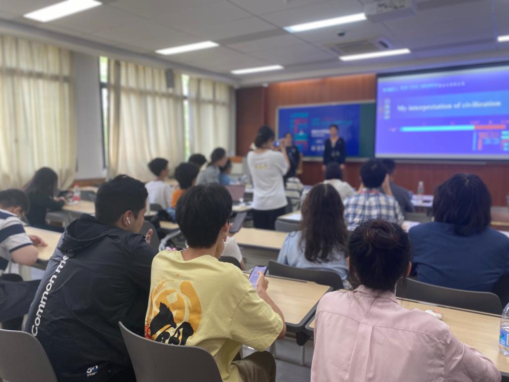 比赛将近尾声之际,评委老师童臻安基于选手的演讲内容,就“如何看待文明”给出了具有指导性的见解。他指出,文明是一个宏大的概念,包含很多复杂的因素,要成为纵观古今、博览寰宇的青年学生,我们尤其要以审慎客观地态度理解文明,在浩瀚的历史长河中汲取丰厚的人文养料,立足世界、走向未来。童老师的点评让人醍醐灌顶,给比赛画上一个圆满而深刻的句号。