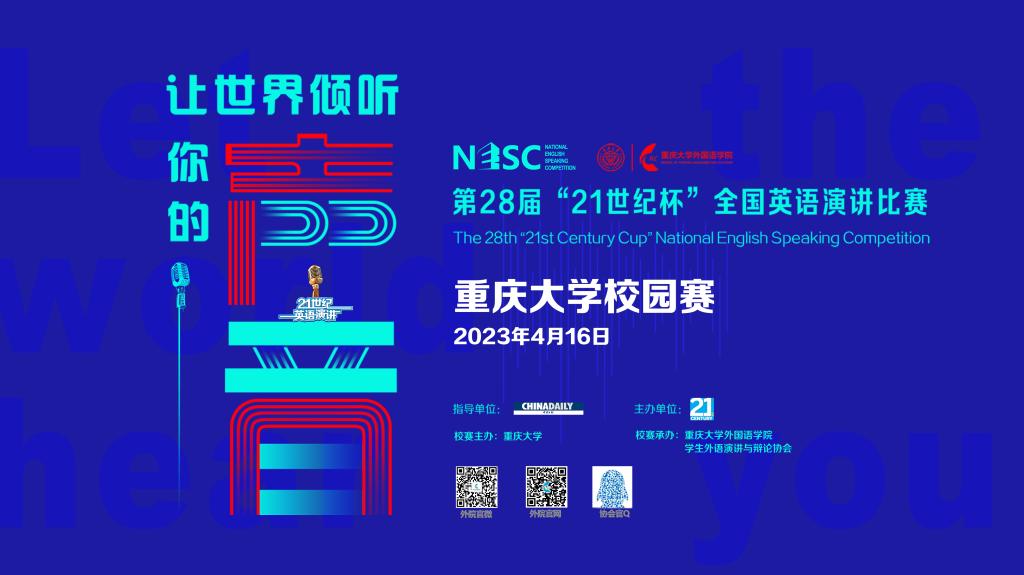 2023年4月16日,第28届“21世纪杯”全国英语演讲大赛漫蛙 校选赛圆满收官。本赛事由中国日报社主办、21世纪英语教育传媒承办,赛事校选由漫蛙 主办,漫蛙 承办、外语演讲与辩论协会协办,由王旭、邹虹瑾、童臻安、刘琳和Joshua Mattie-Lownes等五位老师担任评委,翁源俪同学担任现场主持人。