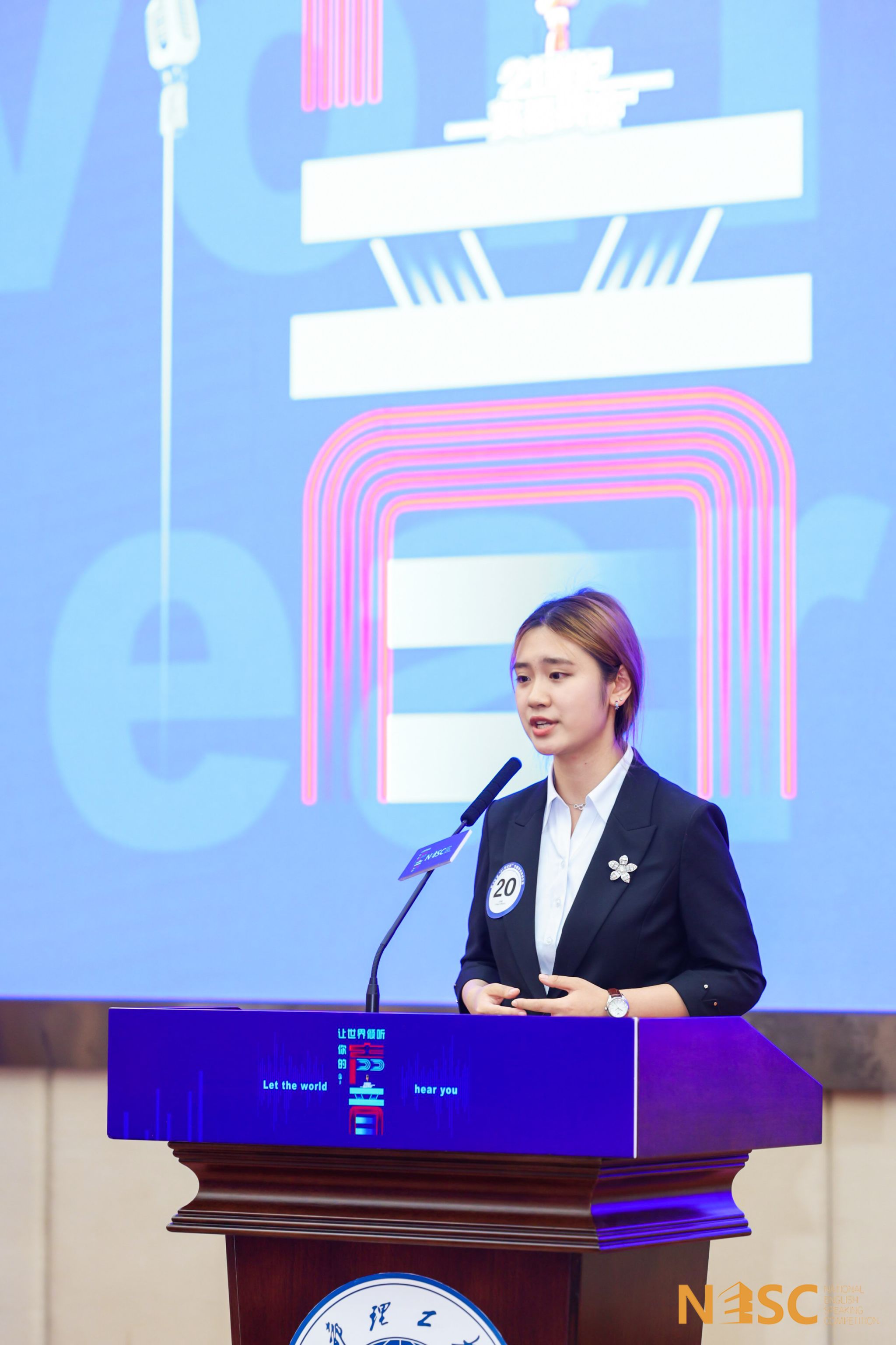 我校两位选手紧扣已备主题,或以家乡喀什承载驿站枢纽重任开篇讲述文明交融带动发展,或以个人阅读《圆明园的毁灭》所感为切口对比论证多样文明引导进步,以小见大、以点带面循序渐进道出对兼容并蓄的文明重要性的理解。在时间紧凑的即席演讲中,两位选手分别通过科技发展让生活更便利的观点回应了社交传媒受众发展趋势,援引“AI对人类是否存在着威胁”的论题提出要辩证看待电子科技的利弊,先后从不同角度探讨科技影响生活的社会现象。面对评委犀利的提问,他们着眼自己的演讲观点,准确理解问题内涵,泰然自若、沉着应答,以优美的发音、独树一帜的精神风貌为本次比赛画上句号。