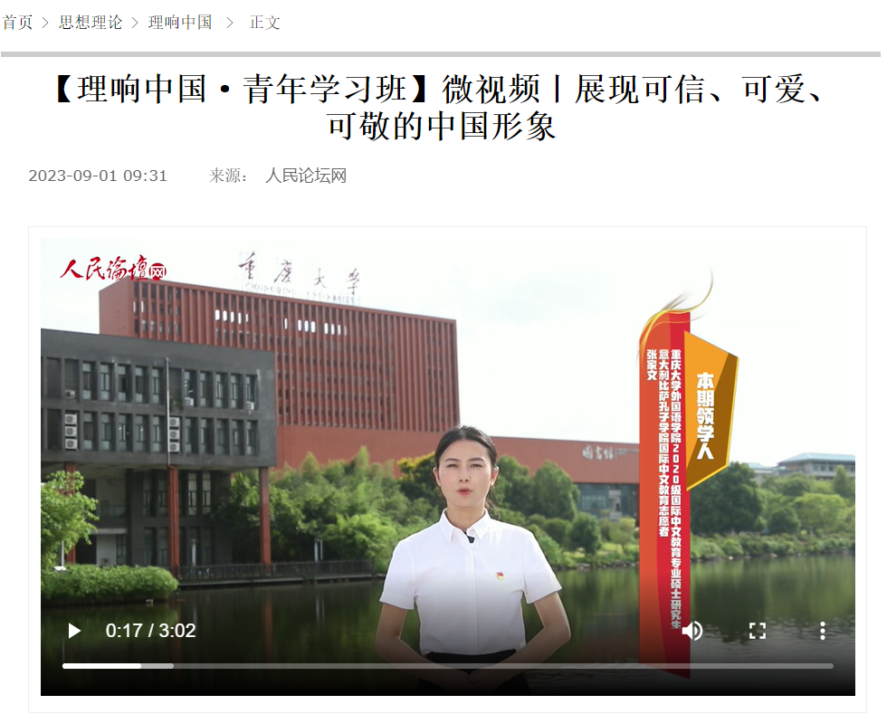 我院国际中文教育师生团队融媒体作品被《人民论坛网》选用