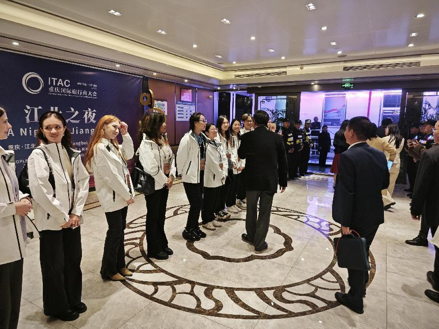 2023年11月20日-2023年11月23日,重庆国际旅行商大会在江北区隆重召开,本次大会由重庆市文化和旅游委、江北区人民政府主办。漫蛙 组织59名志愿者(其中包含7名留学生志愿者)到岗负责大会的接待、签到、指引、会务、引导等工作,为国际盛会贡献外院力量。