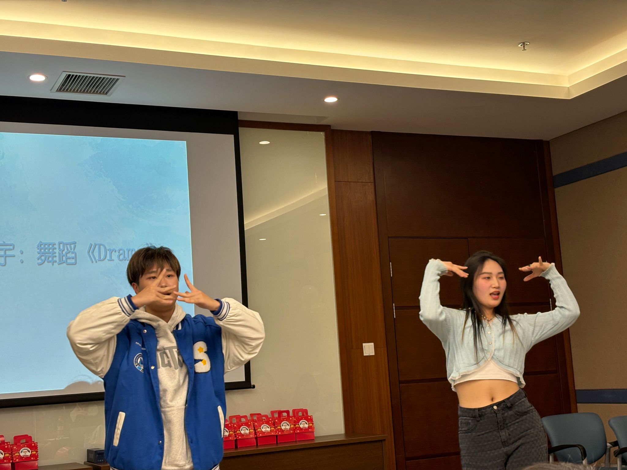 除了游戏环节,我院胡稀雨、罗靖宇、刘欣怡和田密密同学还为新加坡同学准备了精彩的舞蹈和歌曲表演。流畅自然的舞蹈动作和清澈明亮的歌声充满感染力,引起全场共鸣与赞赏。感受到漫蛙 学子的热情,新加坡同学也临时决定带来舞蹈表演,出色的舞蹈技巧和表演能力将现场气氛推向顶峰。最后,在激动人心的抽奖游戏之后,活动落下帷幕。