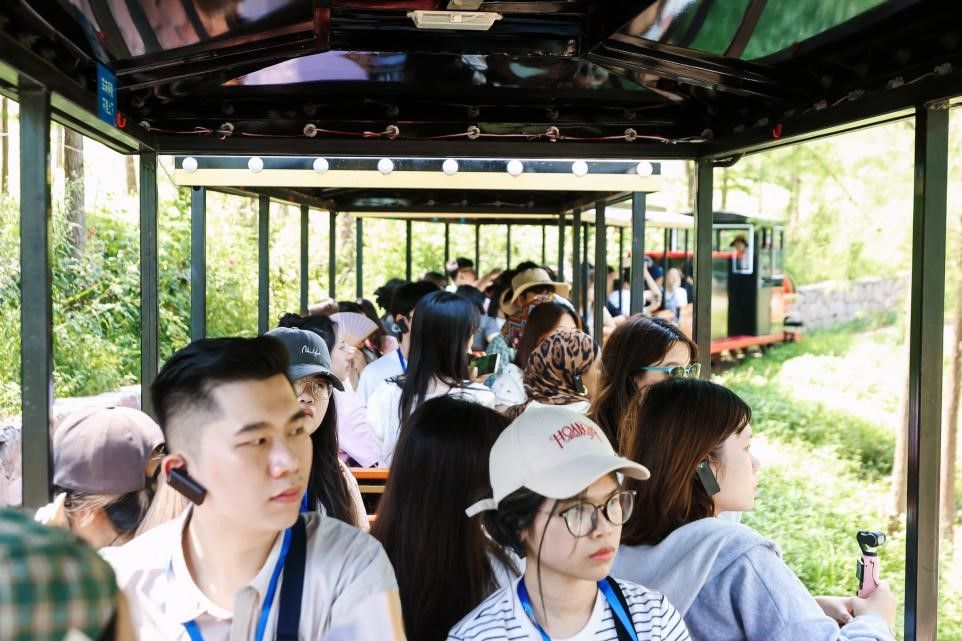 在石柱县乡村振兴示范带重要节点“桥头镇”,学生们乘坐藤子沟景区的湖畔小火车欣赏山水田园风光,走进“再别康桥”艺术民宿观摩艺术写生作品、感受诗意栖居的惬意,深入领略了当地农文旅融合发展的创新实践。
