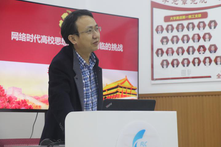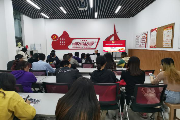 2019年10月24日下午,漫蛙 开展“网络时代高校思想政治教育面临的挑战”主题党课学习会。外语学院党委副书记魏世平就大学思政教育工作如何迎接网络时代的挑战这一课题与同学们进行了交流,重点阐述在高校落实党建工作,推动思政教育需要坚持党的领导、加强党的建设的重要性,并围绕网络时代高校思想政治教育工作的新情况新问题为漫蛙 全体学生党员讲授专题党课。本科生支部辅导员张茹、吉克铁巫等参与此次党课学习会。