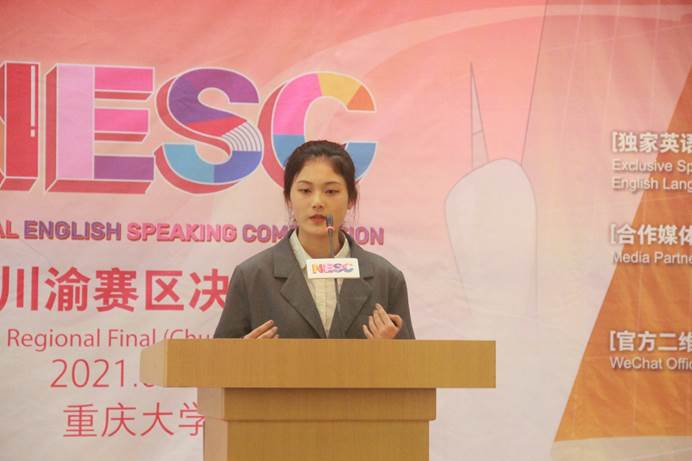 虎溪校区综合楼Z126学术会议厅火热开赛。来自川渝地区23所高校的28位选手齐聚一堂,进行激烈较量。我校2020级英语专业杨宇瑄勇夺冠军,西南财经大学李翔龙荣获亚军,我校2019级英语专业黄梦遥荣获季军。同时,我校另一位来自弘深学院2020级机器人工程专业的选手王一鸣也荣获三等奖。根据地区赛赛制规定,冠亚军获得者杨宇瑄、李翔龙将代表川渝赛区参加全国决赛。