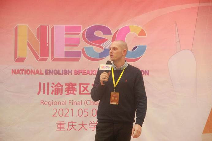 参赛的选手、指导老师和各位评委致以谢意,他特别赞赏了选手们的抗压能力和舞台张力,鼓励年轻的演讲者们着眼全球治理,讲好中国故事。Kassian老师称赞了演讲者们对第二语言的熟练掌控,表示教学相长是学习外语的好方法。