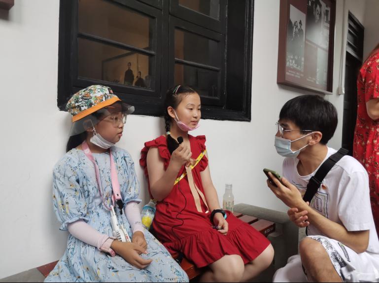 来自山东青岛的袁子琦(化名)和邱秋(化名)小朋友在接受实践团采访时表示,在看到周公馆内的陈设一如往常,在园区内所设的建党红色宣传的影响下,她们深受感动。两名小朋友在镜头面前自豪地表达了自己对于祖国的爱,并且立志希望自己能够好好学习,将来报效国家。