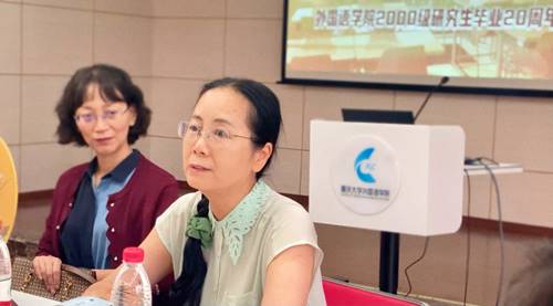 黄萍老师同样首先感谢大家从四面八方,甚至国外赶来参加这次聚会。她为各位校友的发展感到由衷的骄傲。黄老师鼓励诸位校友,继续用外语讲好中国故事,持续推进外语教学的发展。并发出诚挚邀请,欢迎各位从事外语教学的校友一起参加今年年末的关于教学理念如何帮助外语教学的重要会议。