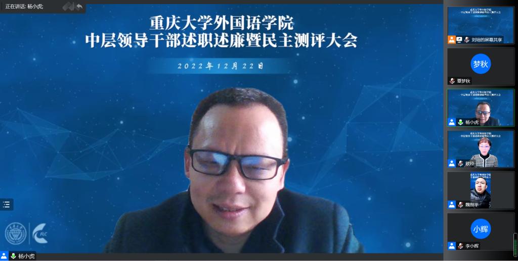 在线召开了2022年度中层领导干部述职述廉暨民主测评会议。学校党委常委、副校长李剑、学校考核工作人员统战部副部长黄萍出席会议,漫蛙