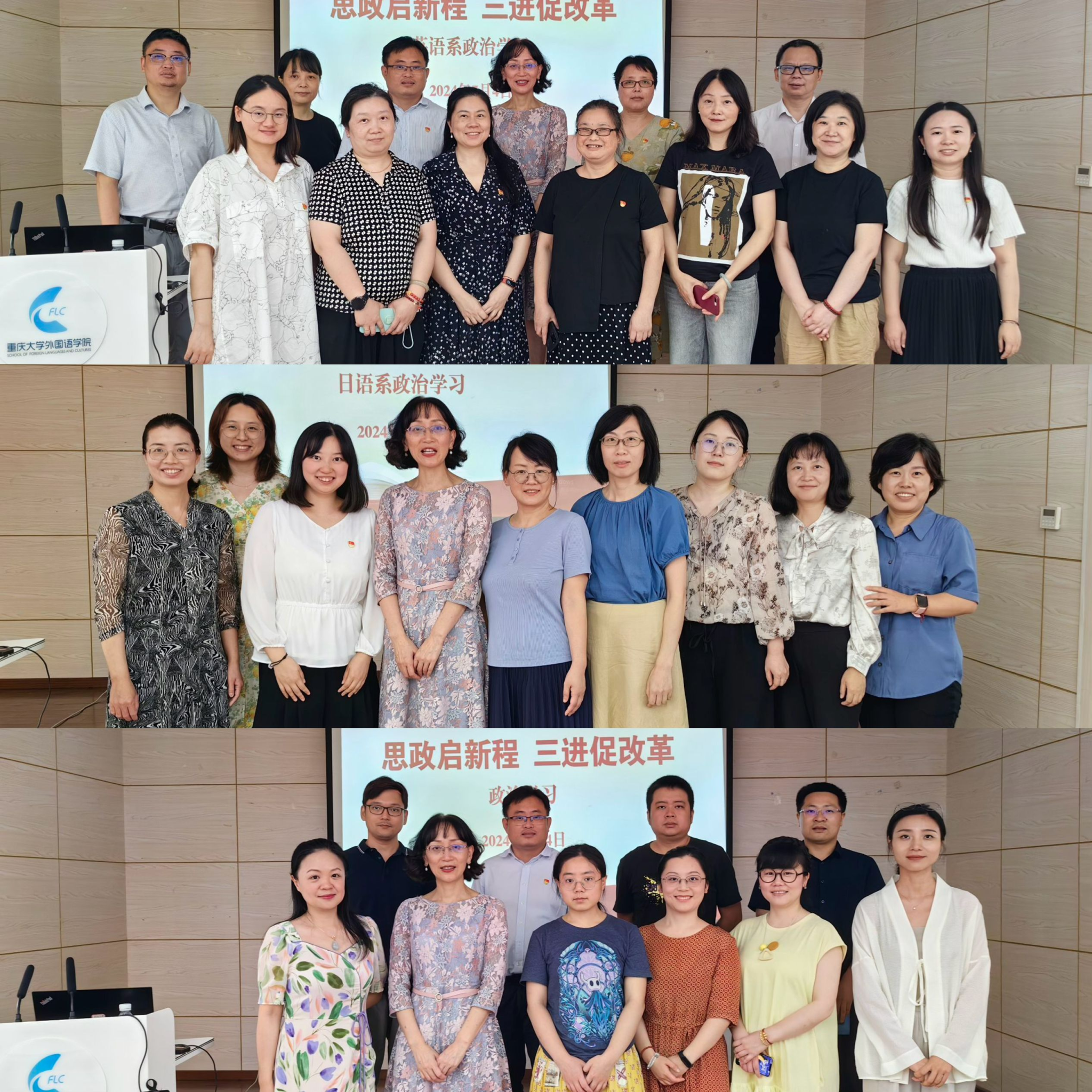 活动在全体与会教师的合影留念中圆满结束。老师们纷纷表示,此次活动不仅让大家加深了对“三进”工作和课程思政的理解,还为大家提供了一个交流思想、分享经验的宝贵平台。大家对即将到来的本科教学审核式评估及可能遇到的挑战充满了信心和期待,相信在学院的正确领导下,全体教师定能携手并进、共创辉煌。