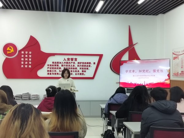 本科生党支部举办了“学党章 知党纪 强党性”主题党日活动,组织支部党员集体学习了《中国共产党章程》。