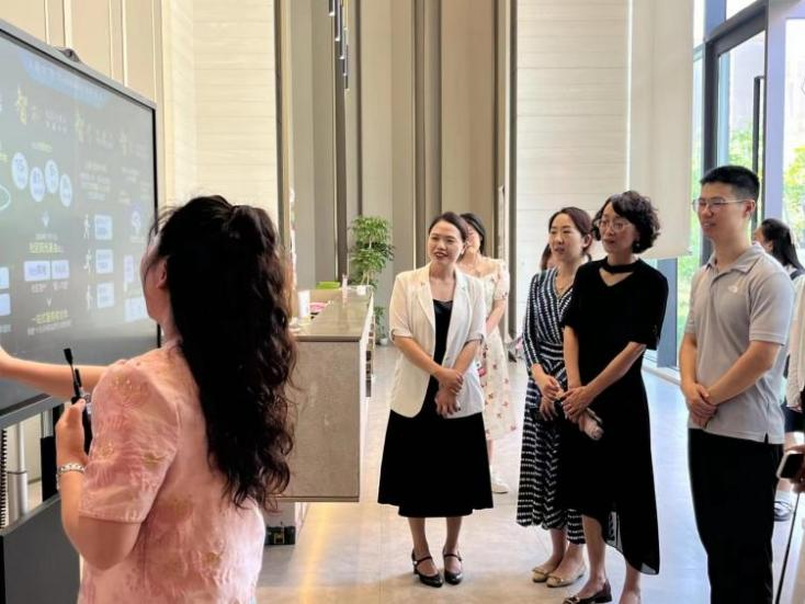 在学智社区党委副书记赖雪晴的引导下,翻译硕士党支部党员先后参观了社区党群服务中心的24小时便民服务驿站、妇女之家及溪畔会客厅等功能分区。参观过程中,支部党员深刻体会到学智社区为提升居民幸福感、归属感的治理创新实践。