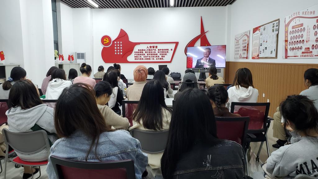 全体青年团员首先观看了由中共中央组织部、中央广播电视总台联合推出的《党课开讲啦——党的光辉历程》特别节目。本期节目由中共中央党校副校长谢春涛主讲。节目中,谢春涛校长分别从中国防控新冠肺炎疫情的举措、精准扶贫这两个方面,及建国之初到新时代中国特色社会主义建设、中外对比这两个维度讲述了中国共产党一路走来的艰辛历程与贯穿革命始终的坚定信念。谢副校长的讲解慷慨激昂,振奋人心,每一位在场的青年团员都似身临其境一般走过了这百年来中国共产党经历的风风雨雨。