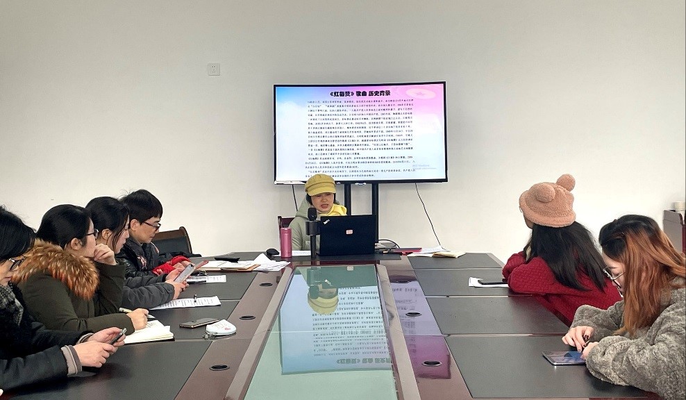 行政党支部全体党员在组织委员谢晓云同志的带领下赏析并同唱歌曲《红梅赞》,一起重温红岩历史,学习红岩精神。