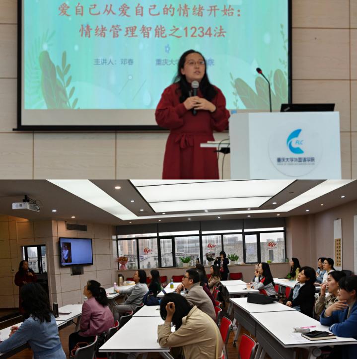 本次讲座的主题是“爱自己从爱自己的情绪开始——情绪智能管理1234法”。邓老师从自身的经历讲起,指出了情绪管理的重要性。接着邓老师介绍了情绪管理智能之1234法,即觉知情绪、舒缓情绪、运动情绪和表达情绪。邓老师通过生动的语言、鲜活的事例,采用互动等方式深入浅出进行讲解,为老师们进行情绪管理提供了具体的解决方案。