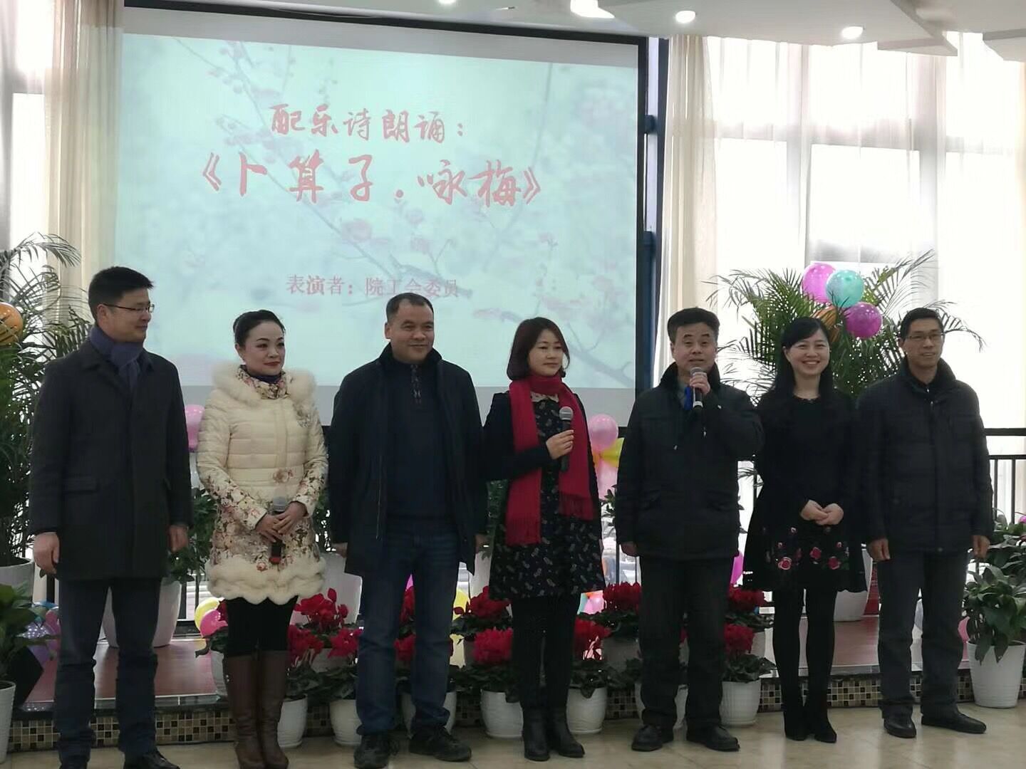 图片1 欧玲书记致辞 图片2 工会委员诗歌朗诵