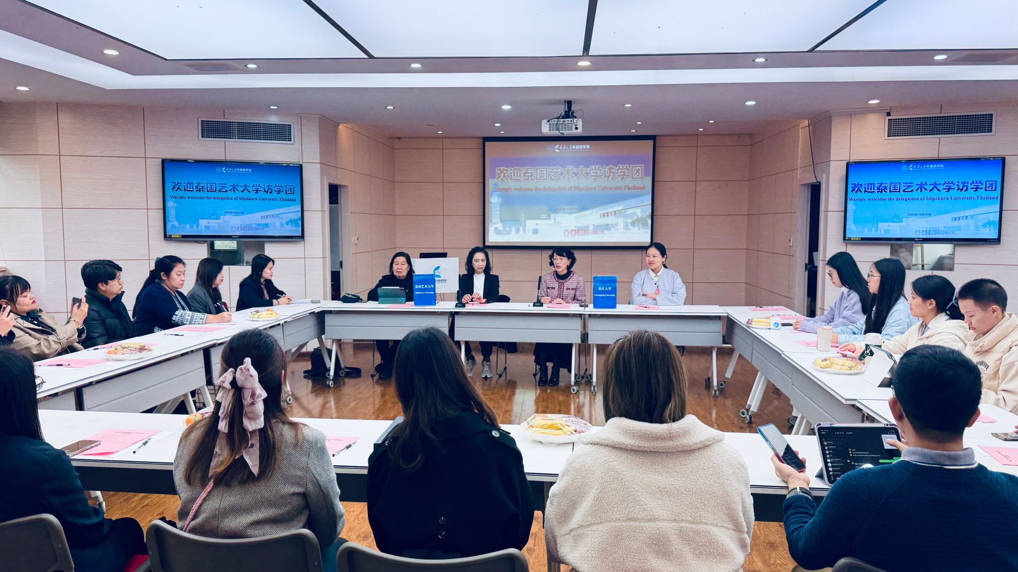 分享个性化教学方案制定等创新做法,泰国艺术大学代表也分享实践经验,双方还参观了教学设施。