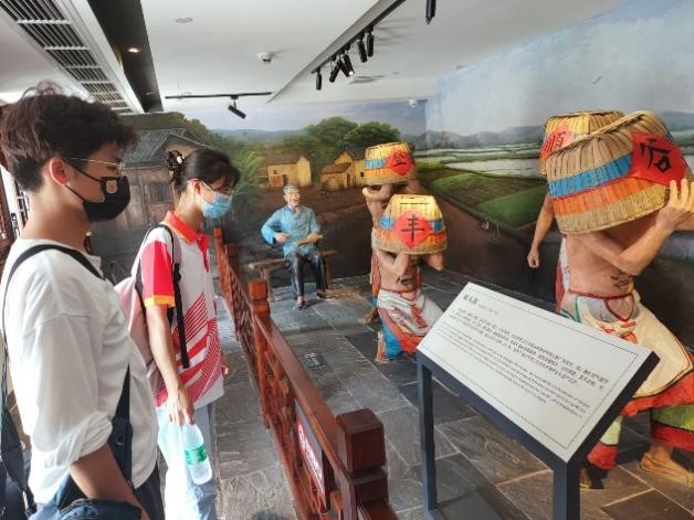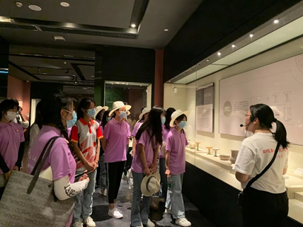 馆内人员介绍,忠县博物馆近几年结合当下人们热衷的旅游方式、热点关注,创新开创“寓教于馆”“短视频旅游推荐官”“青铜器修复成果展”等方式,让文物“活起来”,激发了游客的兴趣,让博物馆参观变得兼具创新性、知识性和趣味性。之后实践团成员与西部计划志愿者参观博物馆,领略到忠县从1949年12月7日14时解放至今的艰苦奋斗史和各方面取得的巨大成就硕果。其中非常关键的硕果之一就是摘掉了“国贫县”的帽子,忠县领导干部与人们群众为了达到这个伟大目标,打破重重困难实现了三峡8万移民成功搬迁,产业发展从无到有等,在助力重庆市与国家脱贫攻坚战的路上,忠县吃苦耐劳,开拓创新的人民群众们做出了许多贡献。