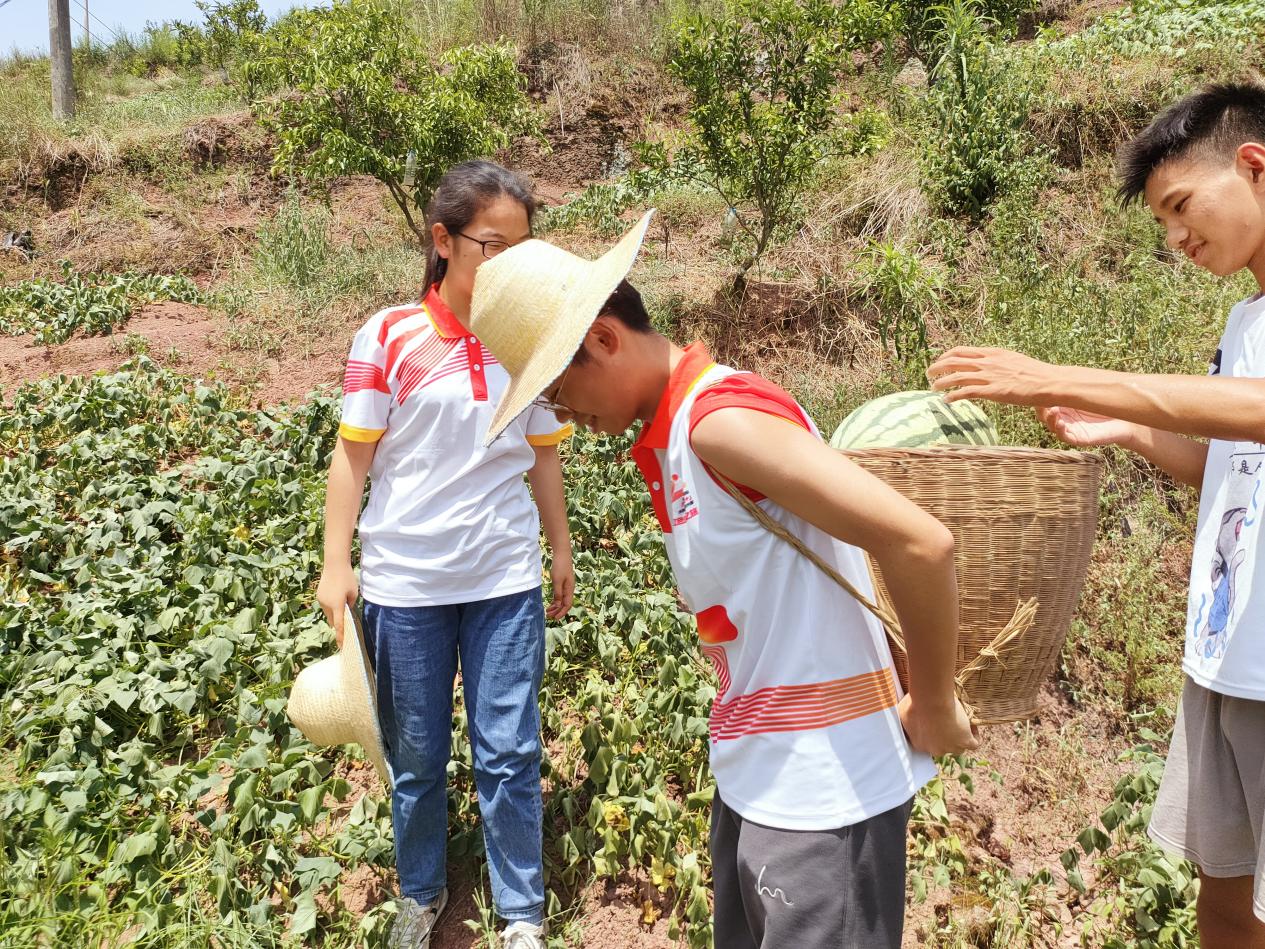 为了更近距离体验居民生活的变化,深刻感悟农业种植的“粒粒皆辛苦”,实践团成员跟随当地农户来到瓜田,协助农户采摘西瓜。实践团成员到达瓜田后,在农户的指导下,掌握相关采瓜要领后,便开始下田采摘西瓜。在采摘西瓜的过程中,居民还为实践团成员讲述了许多种植西瓜的知识以及如何正确挑选成熟西瓜,如何辨别西瓜的长势等农业知识。采摘西瓜后,村民将实践团成员带到了另一片菜地,并对着田地里的作物为成员们一一讲解作物生长习性以及种植技巧。实践团成员们在这次别样的经历中收获了课本之外的知识,也学习到了农产品种植知识。