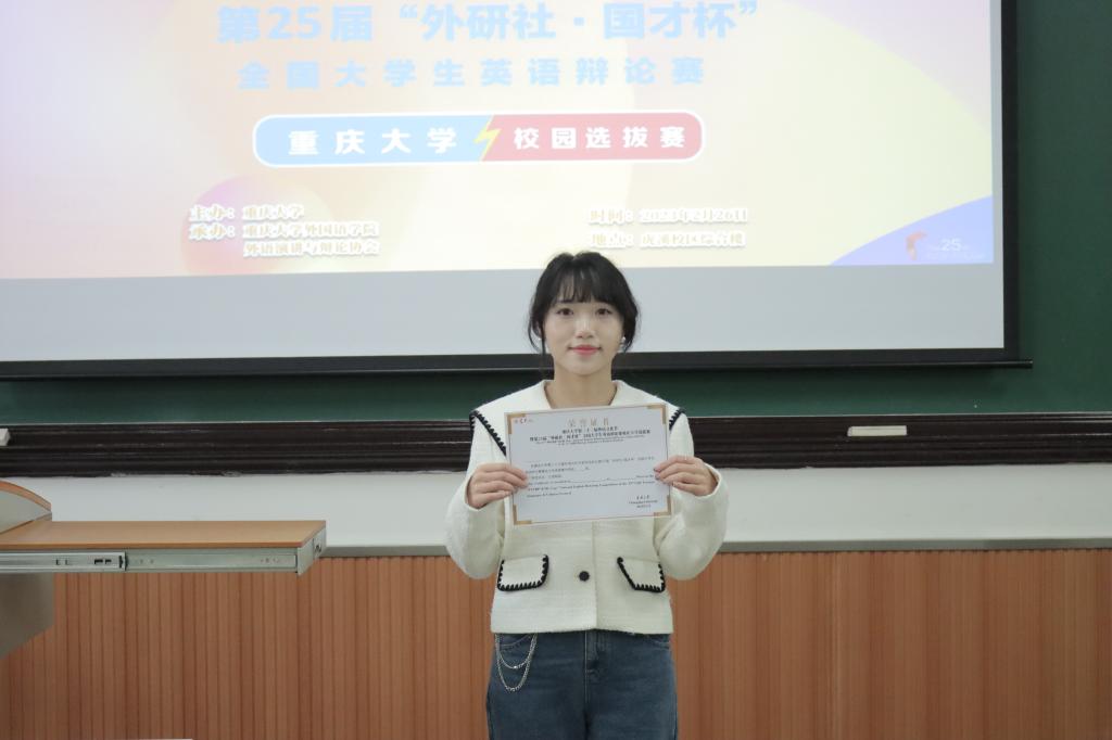 2021级英语专业本科生郭思雨、2019级英语专业本科生刘昳、2020级英语专业本科生李敏仪,物理学院2020级电子信息科学与技术专业本科生伊丽达娜,建筑城规学院2022级建筑类本科生李祐麟、2019级城乡规划专业本科生陈昊隆、2020级建筑学专业本科生马雨萌、2020级建筑学专业本科生孔馨怡等8位选手获得三等奖。