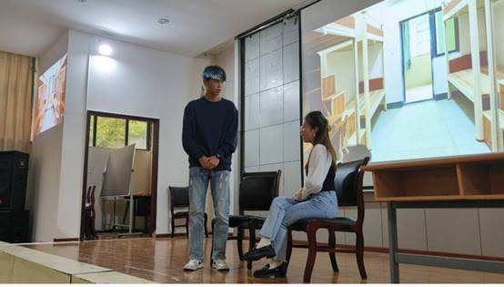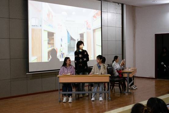 英语3班的情景剧《消失的她》则演绎了一位学生试图采用网络暴力手段使其最好的朋友休学从而获取保研名额递补的故事,故事情节具备趣味性的同时跌宕起伏,结局在情理之中却也在意料之外,让我们意识到了网络暴力的危害性,并警示我们要敬畏网络、谨言慎行。