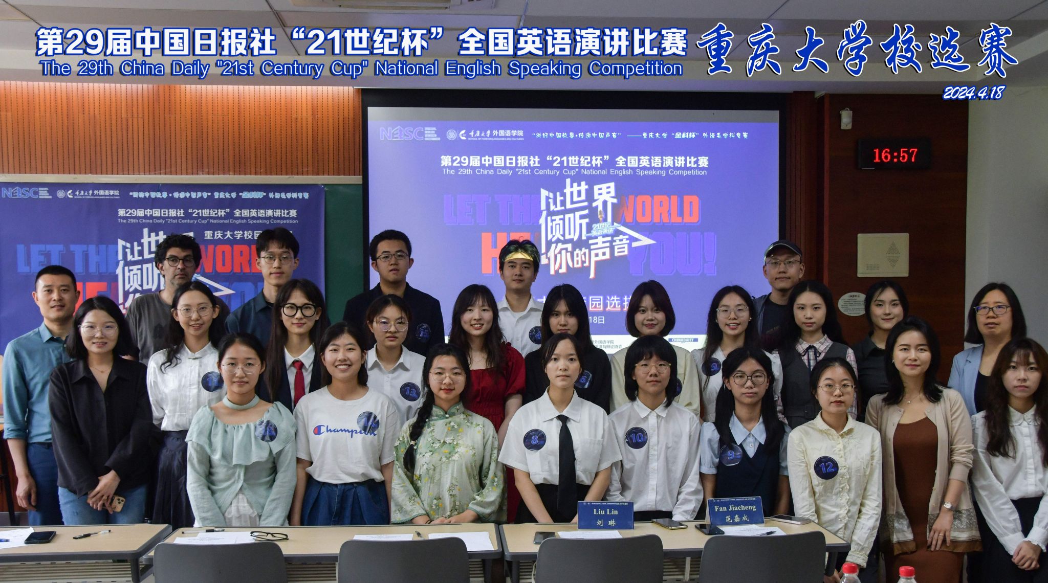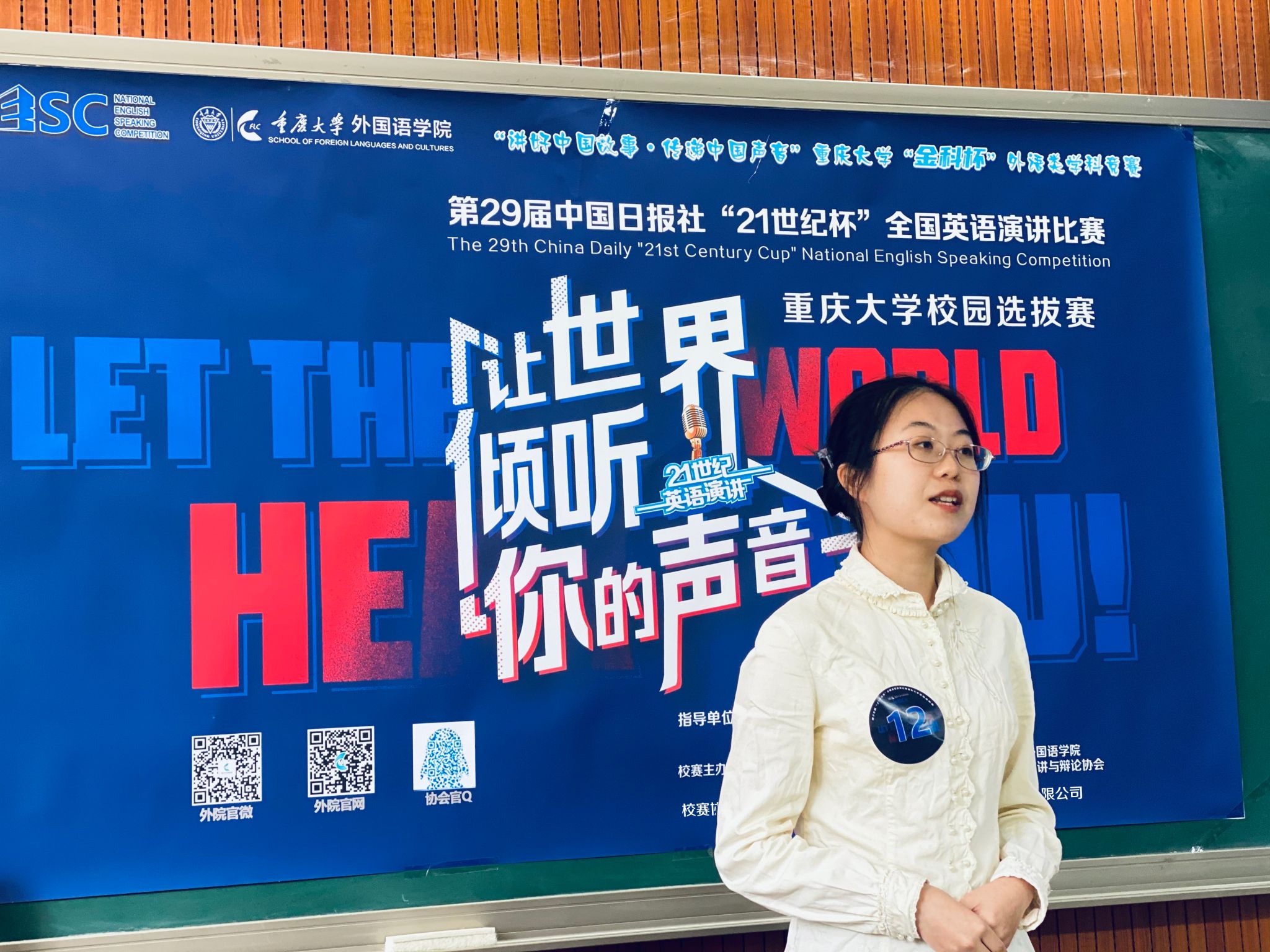 校选赛在虎溪校区第一教学楼D1202圆满收官。本赛事由中国日报社主办、21世纪英语教育传媒承办,大赛校选赛由漫蛙
