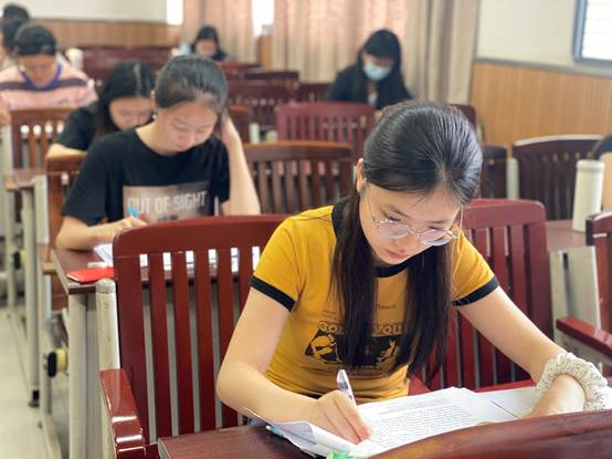 英语综合能力赛项赛题构成包括阅读、翻译与写作三个板块。其中,阅读题采用了对比阅读的形式,聚焦于家庭教育中对孩子数字媒体使用时间的管控问题,这一实时热点问题要求选手们不仅要有对社会现象的敏感关注度,需要选手具备理性分析和提炼整合信息的能力,通过对比两篇文章的相同点与不同点,选手们需要展现出自己的批判性思维和综合分析能力。翻译题分为选择题与文本翻译题,注重考察选手们对中国文化的理解和传播能力,题目多涉及中国传统文化元素以及中国特色社会主义制度的专业术语,这不仅考验了选手们的记忆和积累,还考验了他们如何将中华文化的精髓准确而生动地传递给世界。写作板块题目聚焦于人工智能(AI)这一当前社会广泛关注的热点问题,旨在考查学生对于新兴技术及其对社会影响的关注和思考。选手们需要运用自己的英语写作技巧,围绕AI技术的发展、应用及其带来的伦理和社会问题等提出自己独到的见解和解决方案。