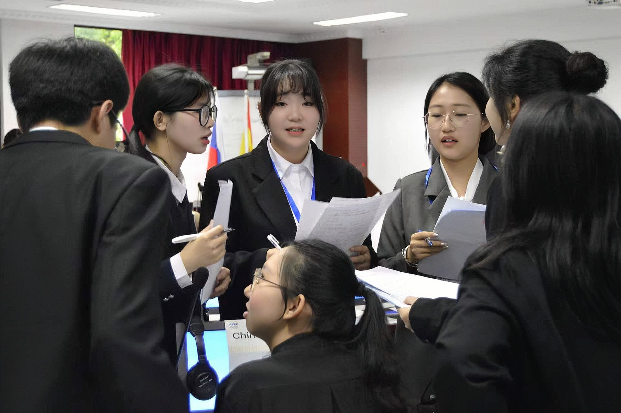 我校五位选手分别代表澳大利亚、加拿大、日本、中国台北、美国等5个经济体进入了同一会场,在自选主题陈述环节中三人选择女性议题、两人选择中小企业议题,从所选议题角度出发阐述包容性增长的意义。自由辩论环节中,他们紧扣此次大会主题,代入所代表国家外交官角色,深入探讨了亚太地区的经济发展趋势和挑战,并提出了许多富有创意和前瞻性的政策建议,这不仅提高选手自身的国际视野和外交能力,也为亚太地区的青年发展贡献力量。