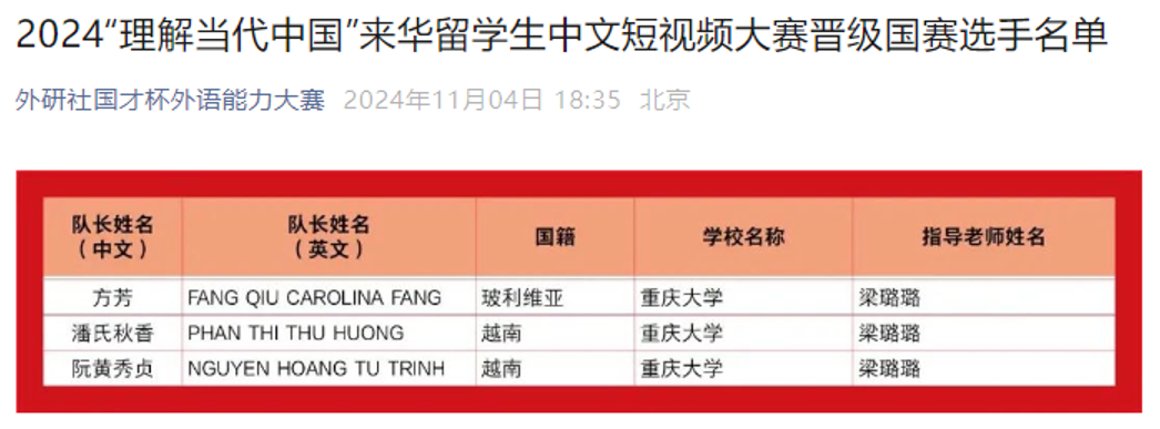 近日,2024“外研社·国才杯”“理解当代中国”全国大学生外语能力大赛英语短视频和来华留学生中文短视频省赛结果揭晓,我校获得3项金奖、4项银奖、1项铜奖。