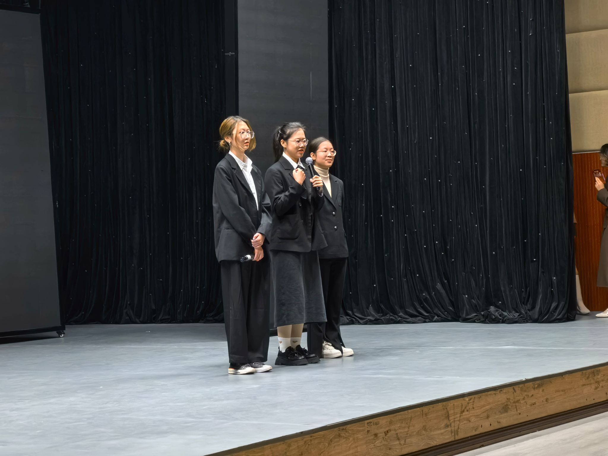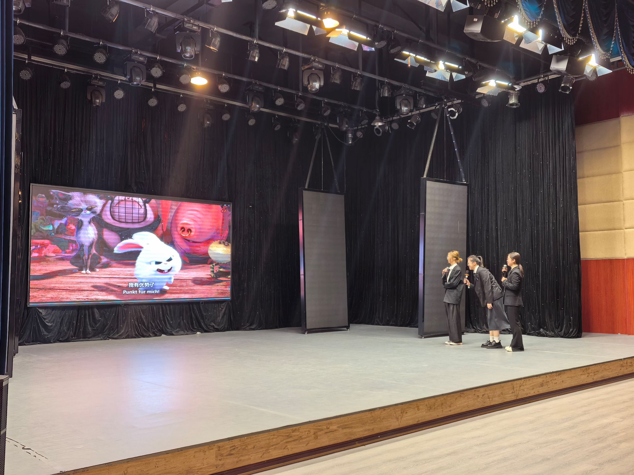 大学组比赛分为命题演讲、即兴演讲、视频配音、趣味猜词四个部分。我校参赛成员沉着冷静、心态平稳。在演讲过程中展现出不俗的德语口头表达能力与思辨能力;在配音环节,三位选手全情投入,用富有感染力的德语配音将一段电影选段演绎得妙趣横生;趣味猜词环节里,成员们灵活应变、配合默契,尽显团队协助精神。