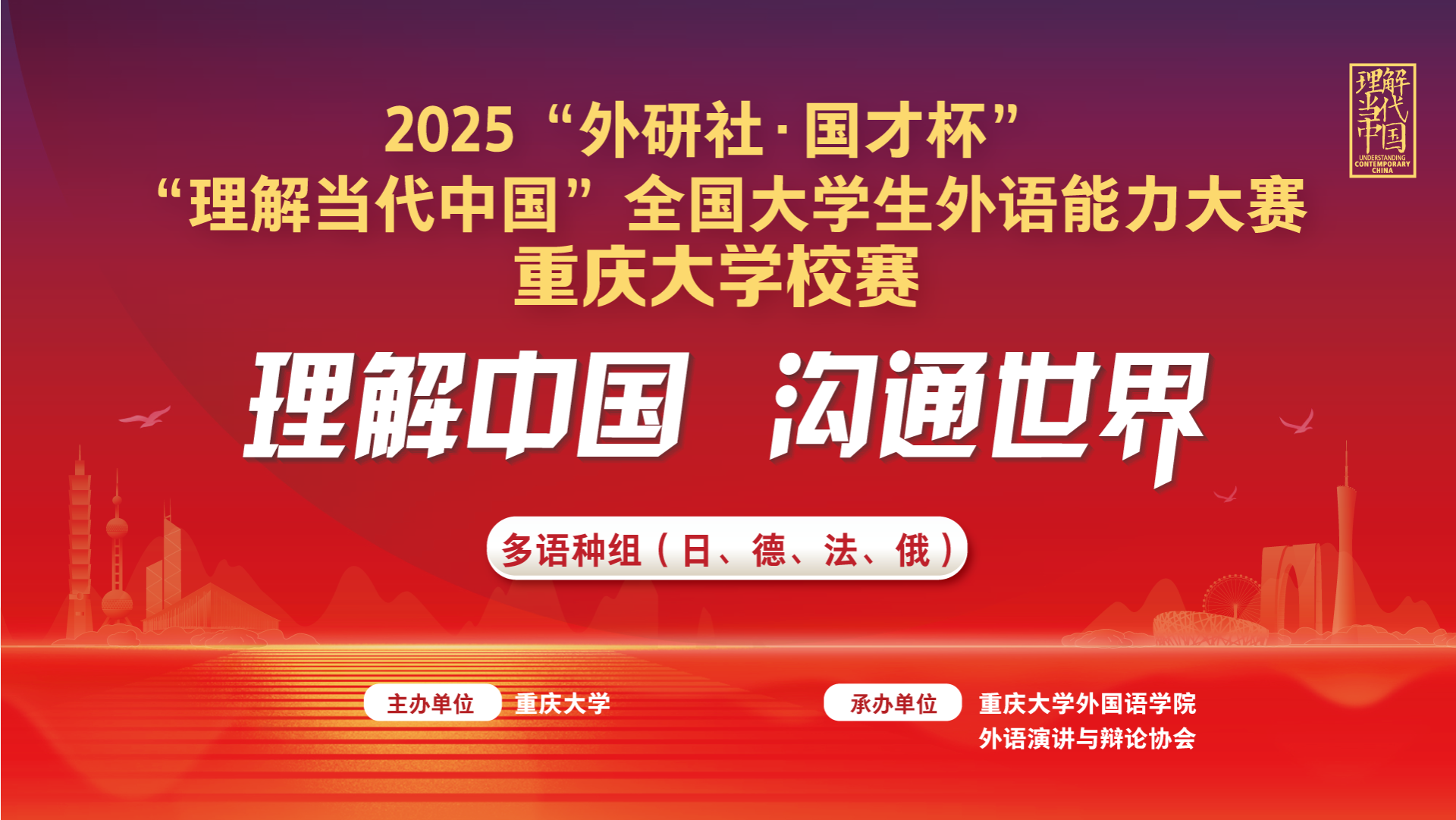 承办、学生外语演讲与辩论协会协办,分日语、德语、法语、俄语四赛项进行,分别于6月7日、6月30日、9月2日在虎溪校区第一教学楼D1112、D1451及漫蛙