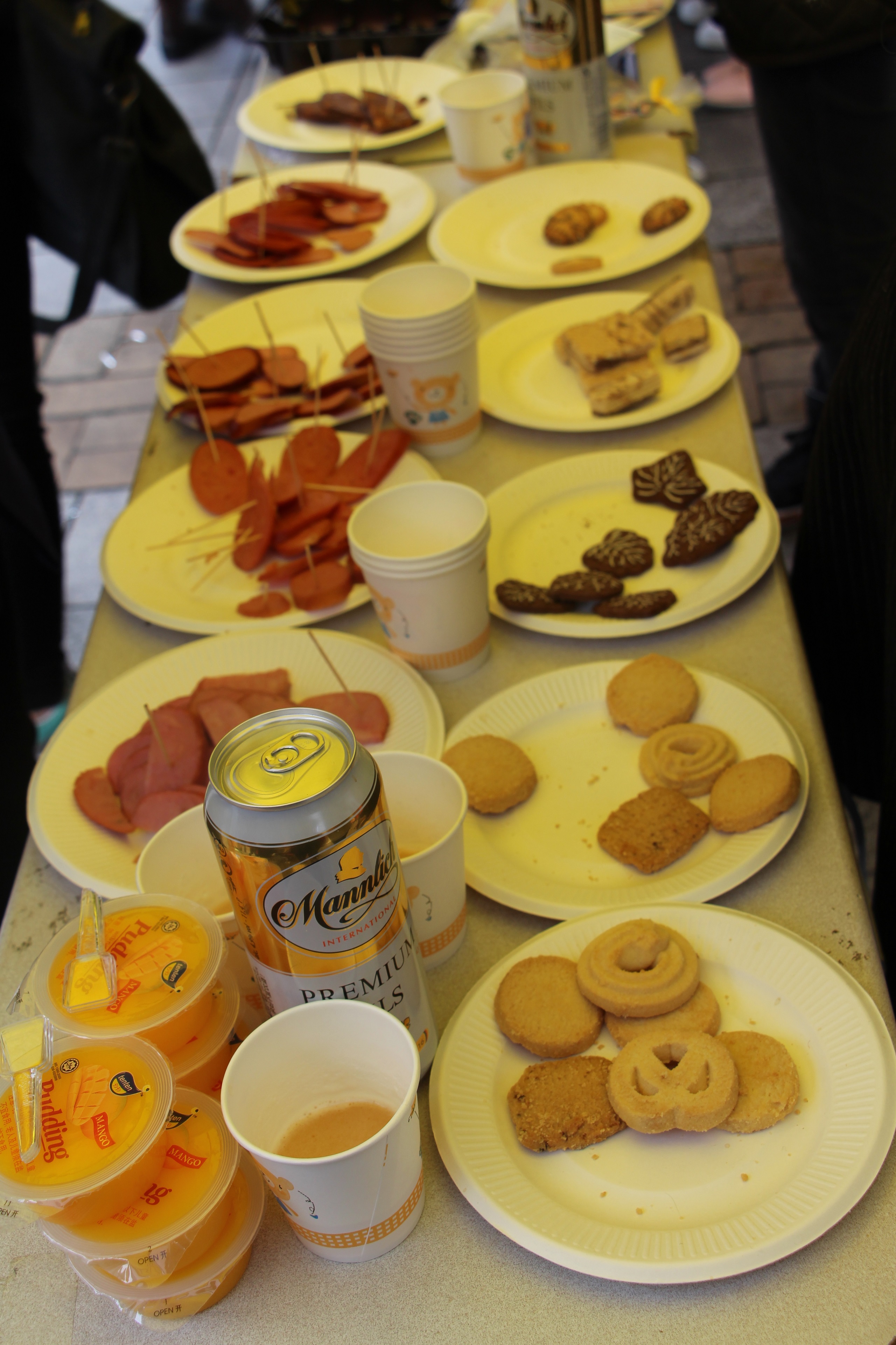 同样飘着美食香气的是相邻的德国展区与韩国展区,德国香肠的香气与韩国泡菜、年糕的香味交织在一起,别有一番风味。当然,德国展区的同学们还准备了德国进口饼干与啤酒,作为奖品提供给那些通过知识竞答及小游戏环节的同学。对于韩国展区的同学来说,用泡菜和年糕的香味吸引观众只是第一步,他们将韩式风格的明信片摆放出来作为礼品来吸引众人的眼球,邀请他们参与游戏,而演唱韩文歌曲这一环节,为韩国展区赢得了不少人气。