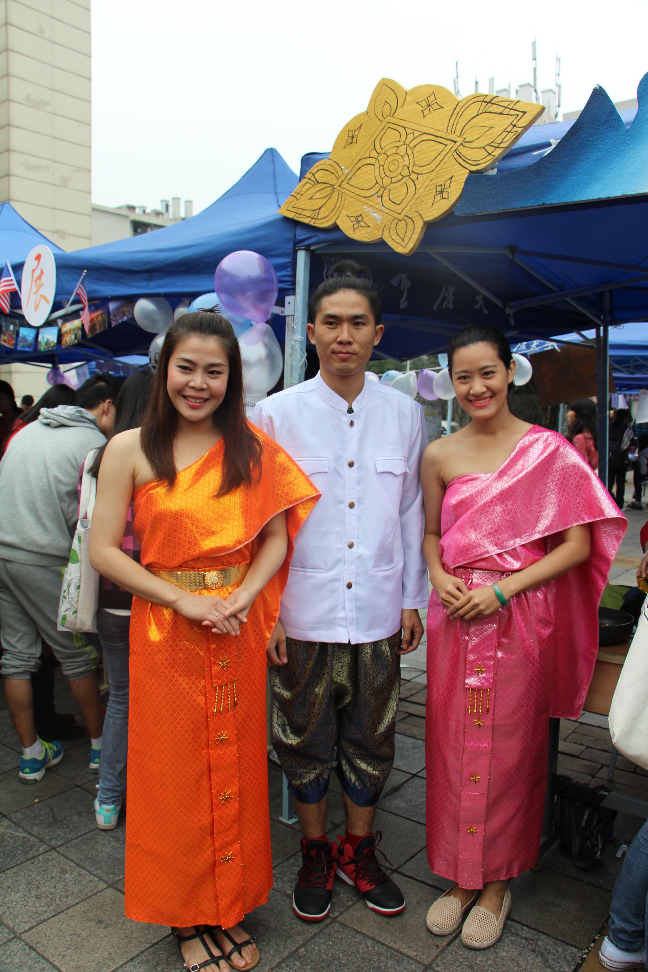 被特邀而来参与展示的泰国留学生们特意穿上了自己国家的传统服饰,为同学们带来了方便制作且又美味的泰国特色菜品。尽管他们的中文不是十分流利,泡菜饼和泰国面散发出的香味让泰国展区总是人头攒动,这些泰国留学生们表示与同学们交谈是一件很享受的事情。