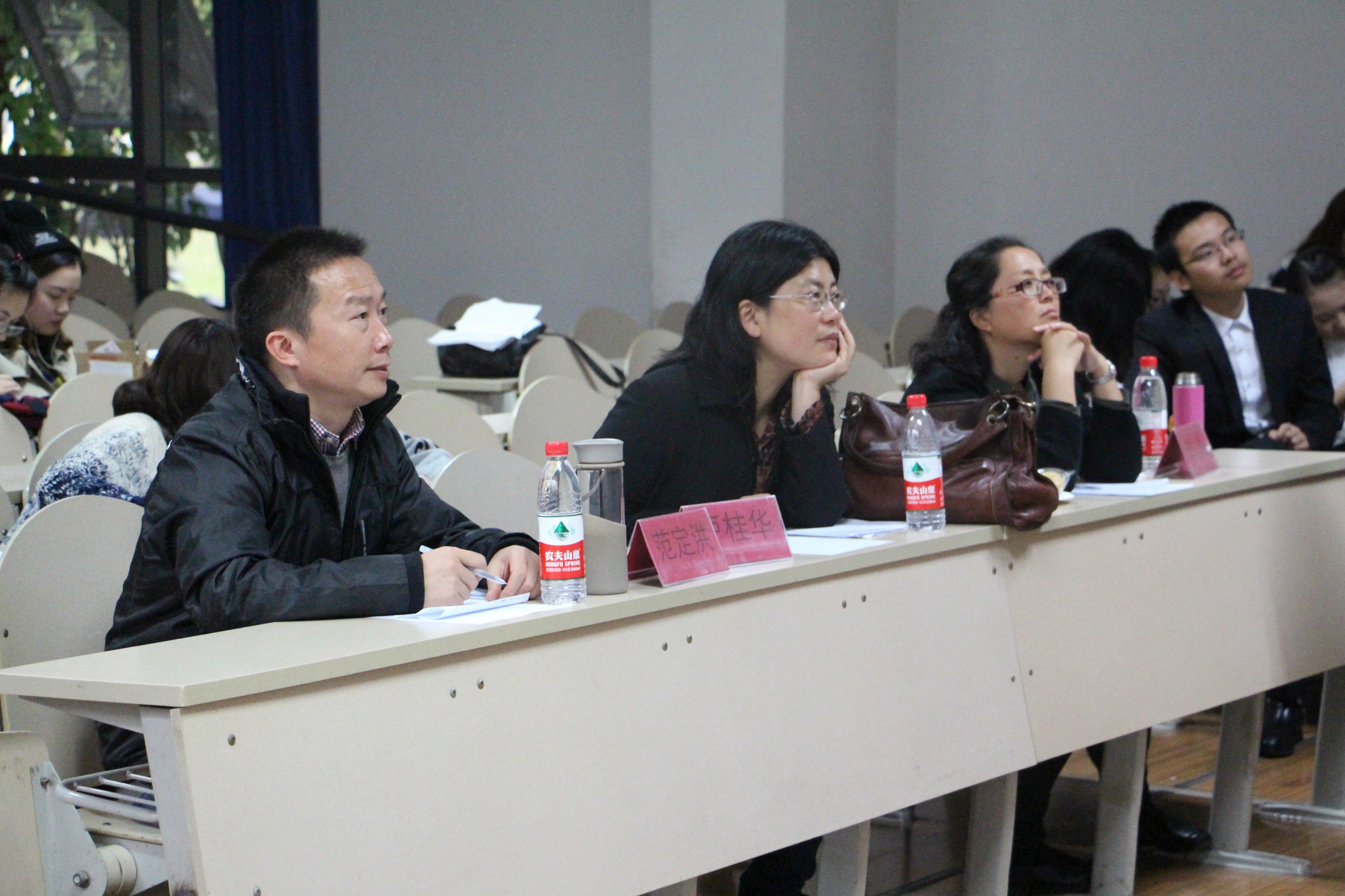 英语专业组初赛现场热闹非凡,比赛现场几乎座无虚席。一共有24个组争夺12个进决赛的名额,甘霞、卢桂华、范定洪三位老师担任这场比赛的评委。