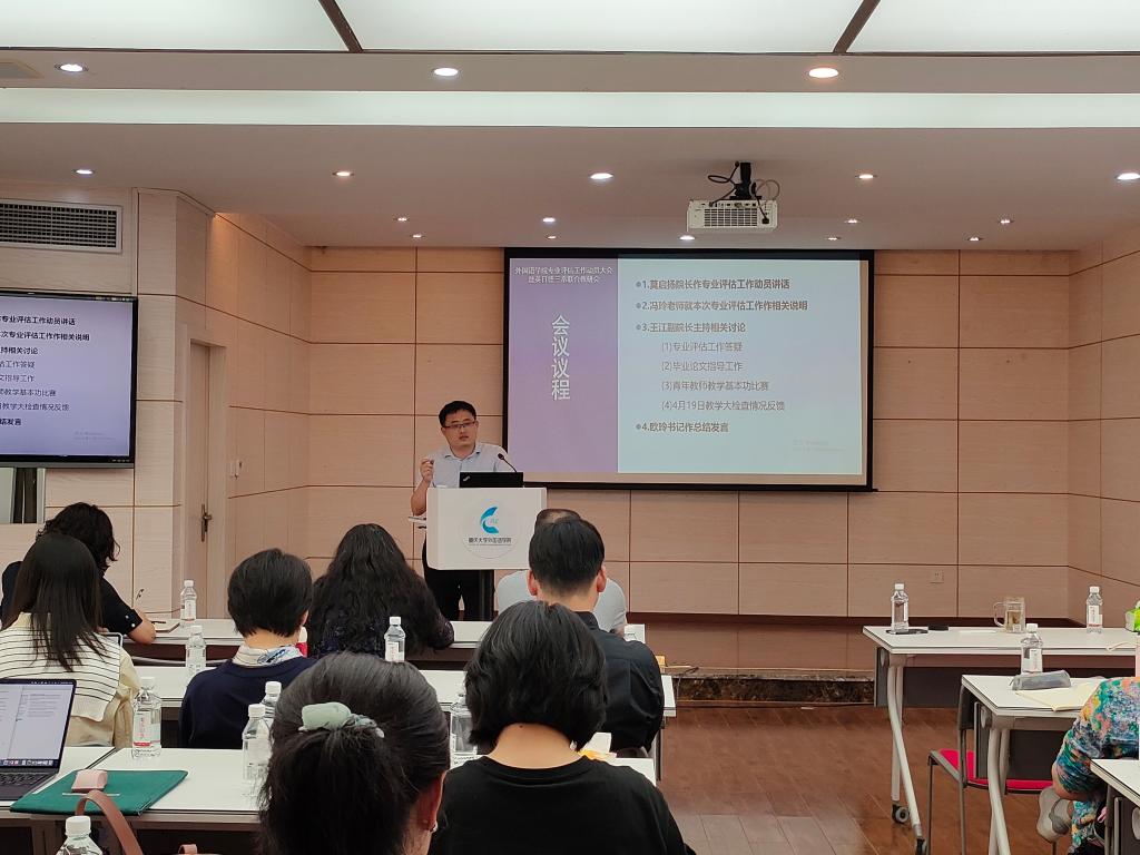 首先是莫启扬院长作专业评估工作动员讲话。莫院长结合教育部新发布的两个重要文件《普通高等教育学科专业设置调整优化改革方案》和《教育部高等教育司2023年工作要点》,强调了本次教学评估的重要性,并传达了漫蛙