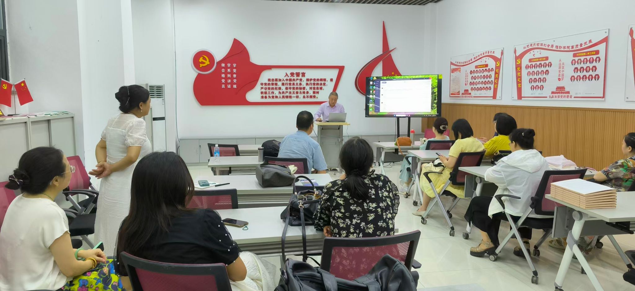 9月18日下午,大学外语工程能源学科课程组成功召开新学期首次集体教研会。本次会议以“AI赋能,重构大学外语教学新生态”为主题,围绕“雨课堂”与“超星”两大教学平台的使用展开深入分享与交流。课程组全体教师积极参与本次教研活动。