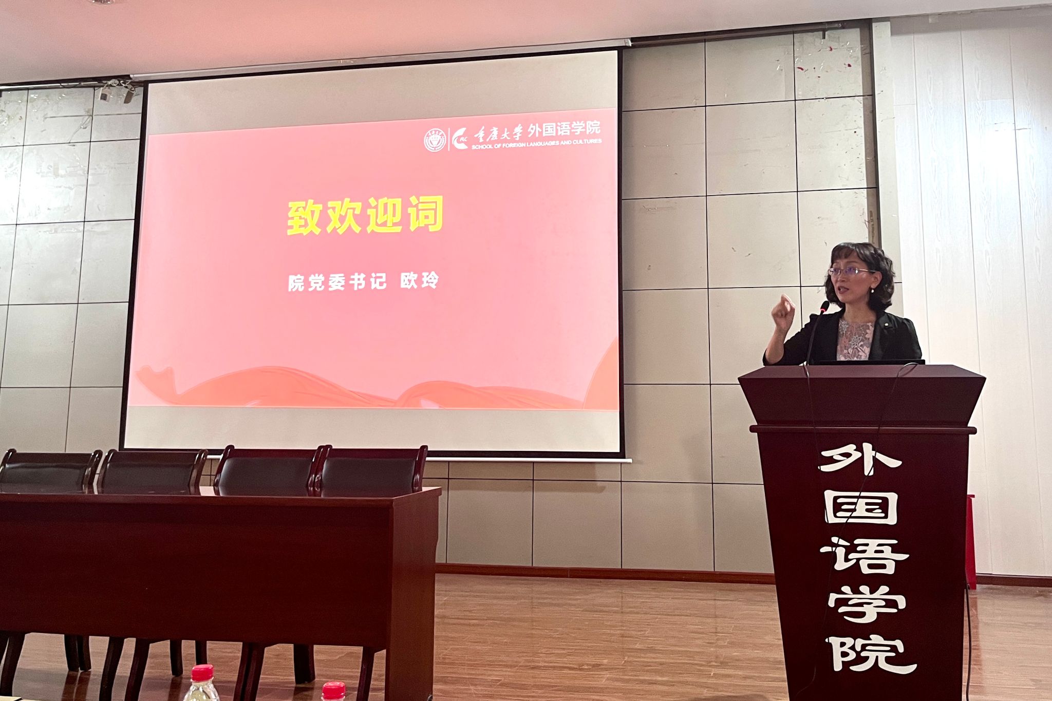 院党委书记欧玲首先向同学们致欢迎词。回溯学院的学科发展历程,漫蛙