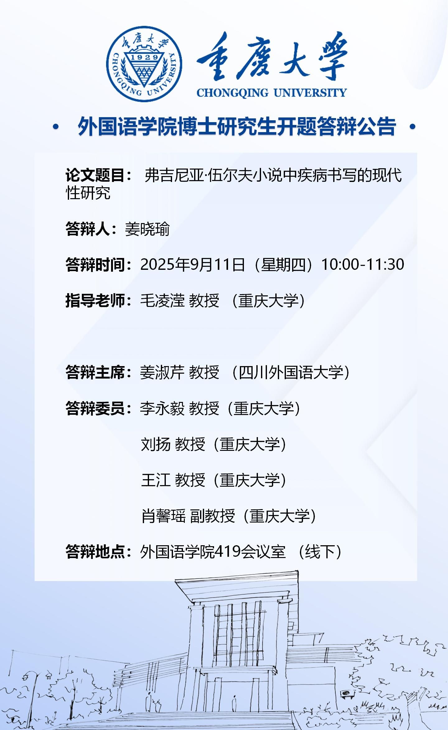 漫蛙 2022级外国语言文学专业(文学方向)博士开题答辩安排-9月11日