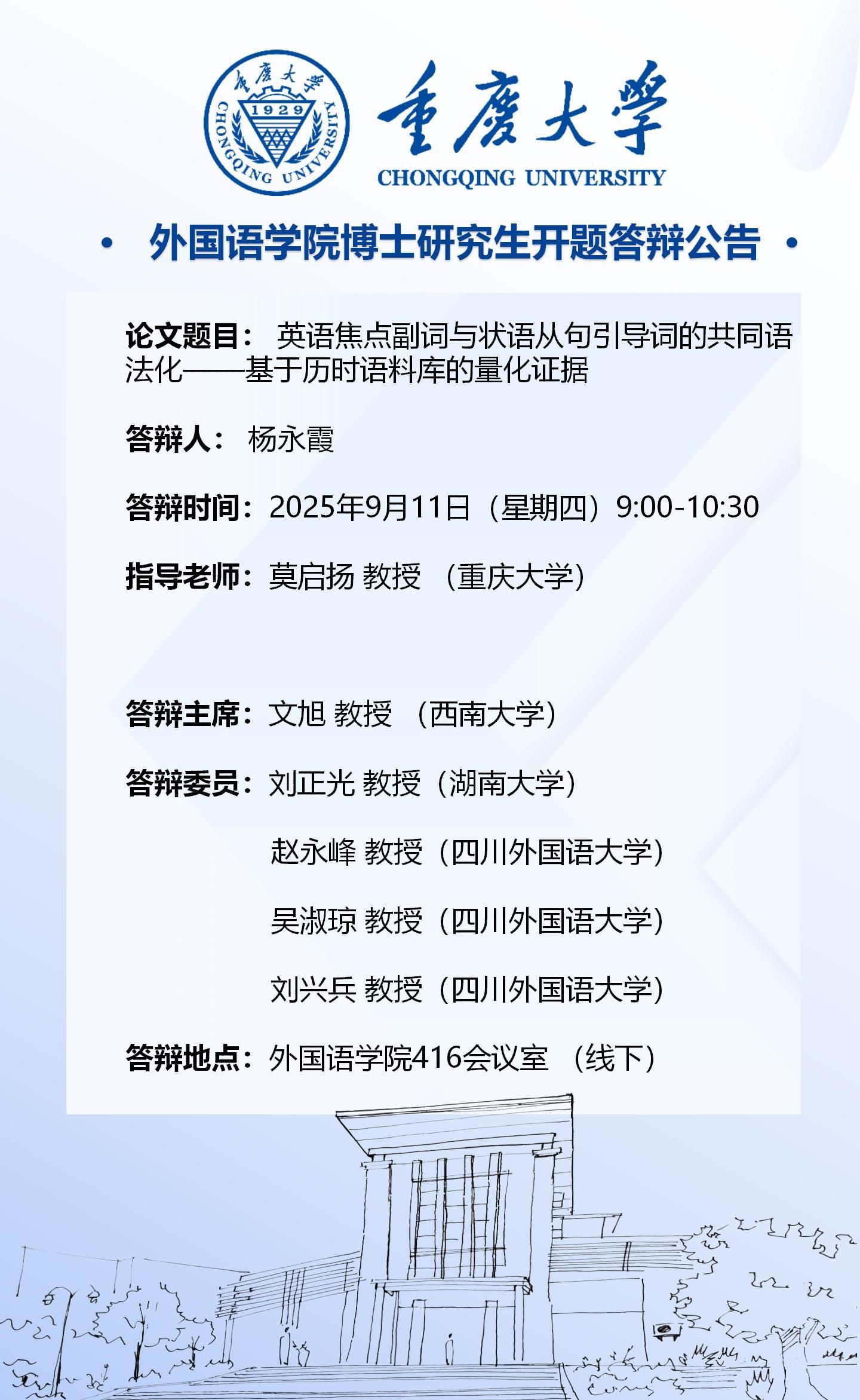漫蛙 2023级外国语言文学专业(语言学方向)博士开题答辩安排-9月11日