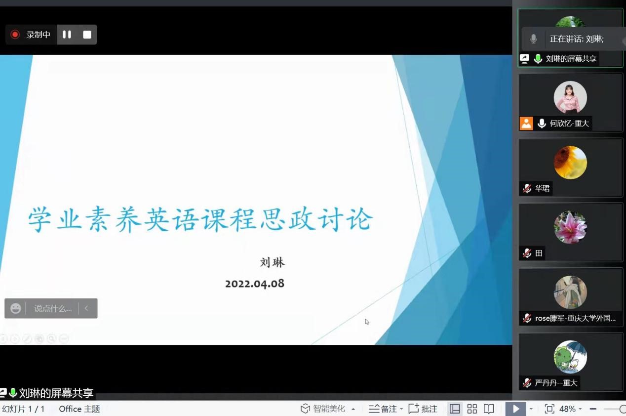 4月8日下午,大学外语教育中心工程与能源学科课程组借助腾讯会议召开了“探索课程思政与大学英语的融合教学”线上教学研讨会。会议由课程组主任何欣忆主持,课程组全体老师参加。
