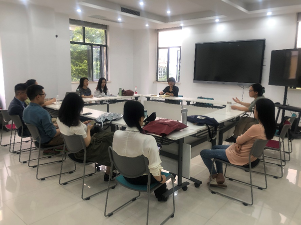 4月20日下午,大学外语创新课程组在大外中心422召开了课程思政专题教研会,本次教研会由教研室主任郭丽静老师主持,副院长李小辉,余渭深教授和教研室全体老师参加了会议。
