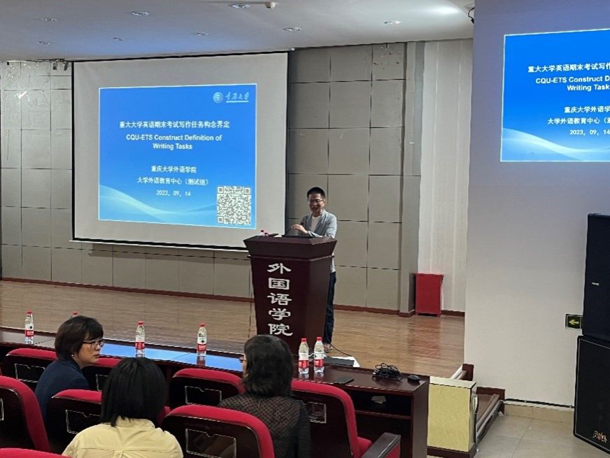 最后,余渭深教授进行了水平测试专题分享。余教授从水平测试的构念界定、测试目标及系统设计、CSE量表&任务&学生技能、写作测试目标及测试框架和能力对接等方面进行了专题分享。