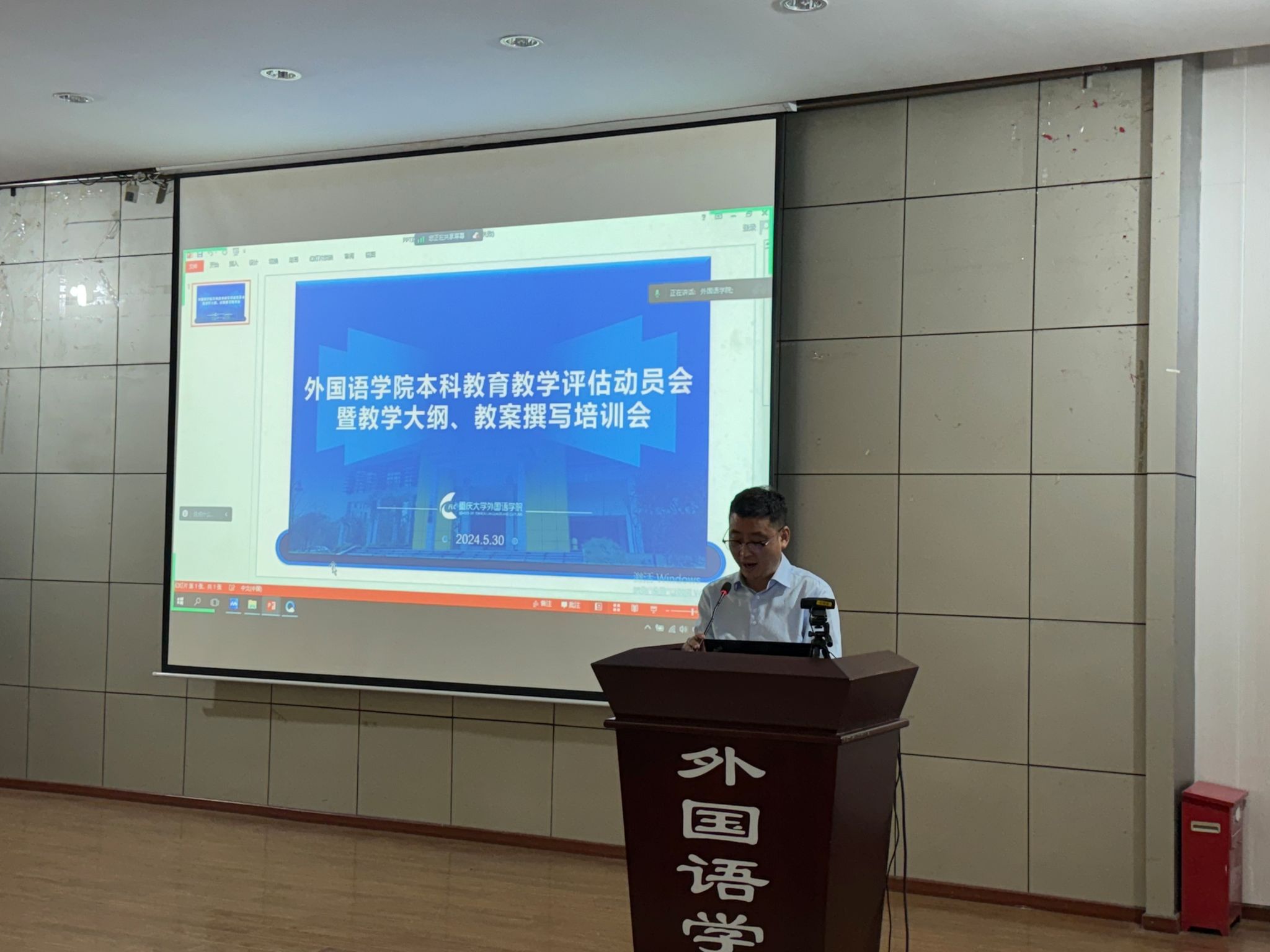 为深入贯彻落实教育教学审核评估精神,确保学院教学质量持续提升,漫蛙 于5月30日下午在学院多功能厅召开了本科教育教学审核评估动员会。本次会议由王江副院长主持,欧玲书记、莫启扬院长、李小辉副院长、刘扬副院长、全体任课教师以及教学管理人员参加了此次会议。会议特别邀请了漫蛙 教师教学发展中心的陈圆副教授和西南大学褚修伟教授分别就教案和教学大纲撰写进行了深入讲解。