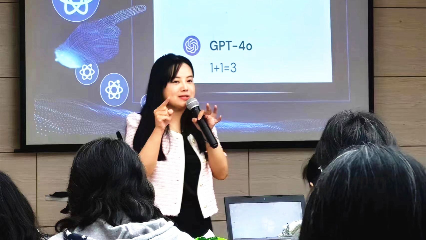 紧随其后,何欣忆老师围绕“AI赋能课程大纲与教案设计”的主题,具体阐释了如何结合具体课程培养方案、教材以及教学大纲要求,运用“智谱清言”等人工智能大模型辅助撰写或修改教学大纲和教案。何老师通过深入的案例分析以及现场实操,让在场的教师们深刻了解到AI平台在教学材料撰写方面的作用,大家纷纷动手尝试,并积极提问、分享心得,现场气氛热烈。