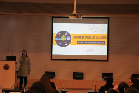 重庆邮电大学艾治琼老师就“信息化教学团队打造之探索”进行了发言,就目前为止重庆邮电大学探索如何打造一支具有外语学科特色的信息化教学团队和与会代表进行了分享。
