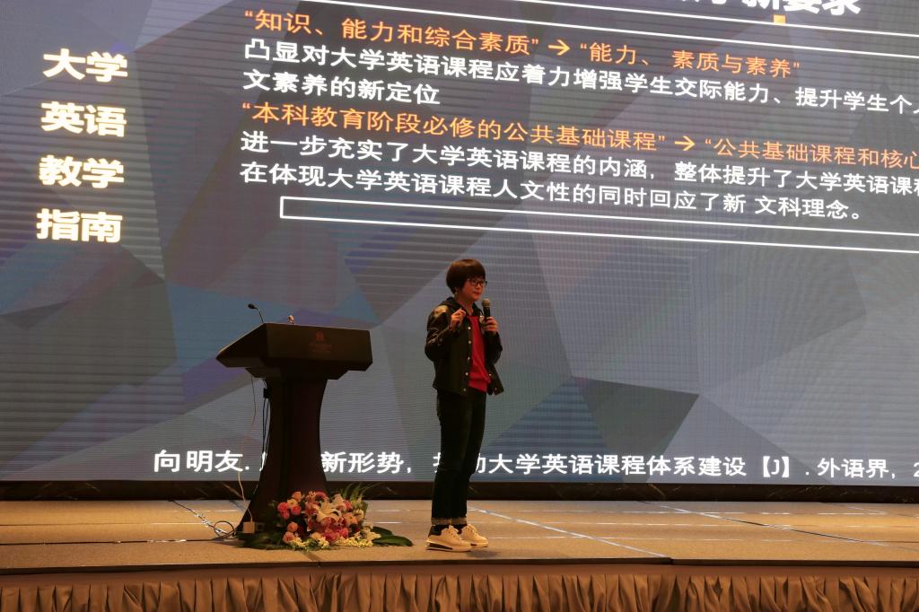 李小辉副院长带来了题为“深挖课程内涵,提升课程质量”的发言,基于大学英语的现实基础,立足于《指南》新要求,分享了漫蛙
