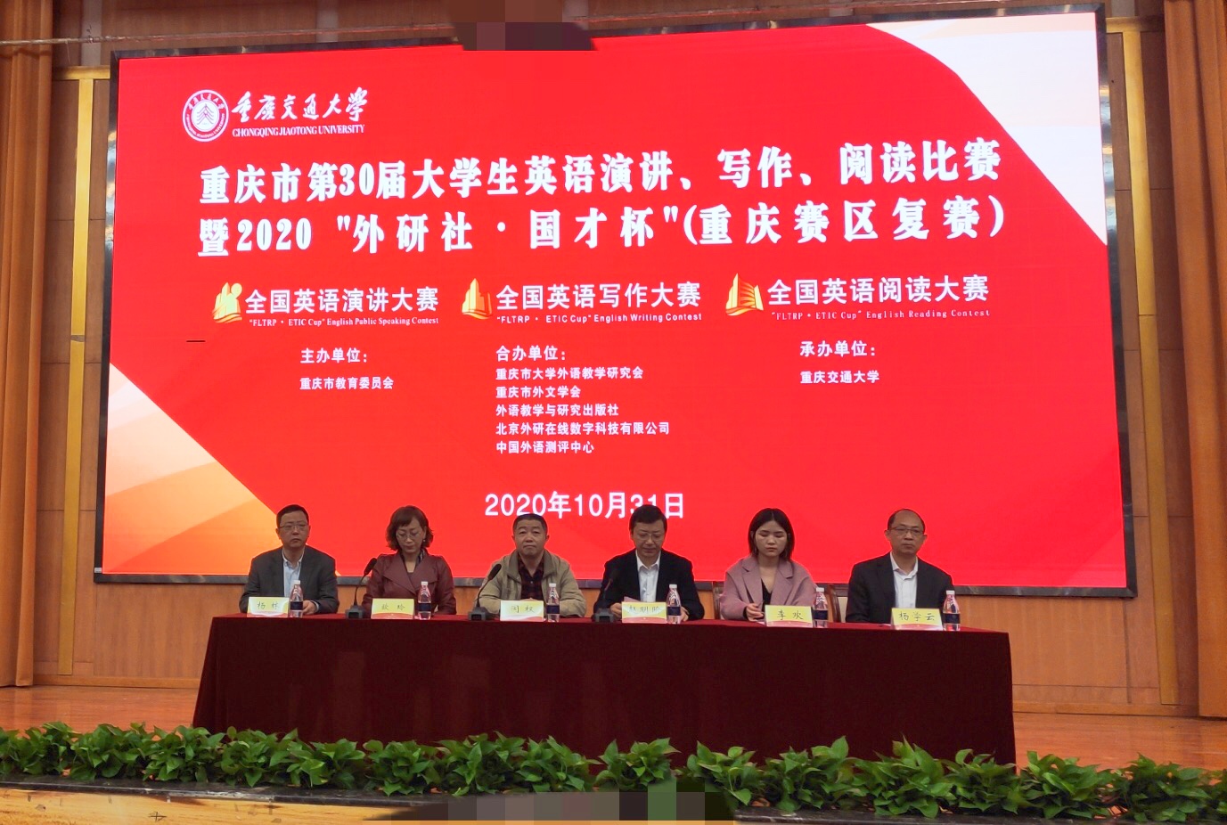 2020年10月31日,重庆市第三十届大学生英语演讲比赛暨2020“外研社·国才杯”全国英语阅读、写作、演讲大赛重庆市复赛在重庆交通大学举行。本次比赛由重庆市教育委员会主办,重庆市大学外语教学研究会、重庆市外文学会、外语教学与研究出版社、北京外研在线数字科技有限公司、中国外语测评中心协办,重庆交通大学承办。共有来自市内28所高校的307名选手分赛事类别同场较量。